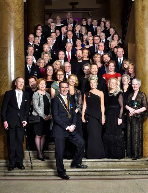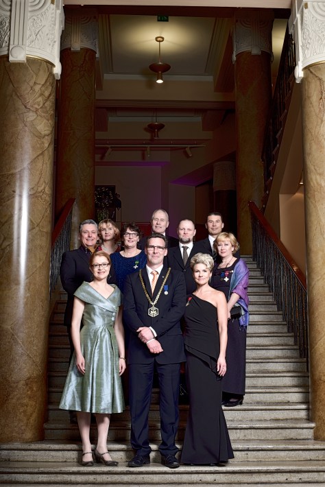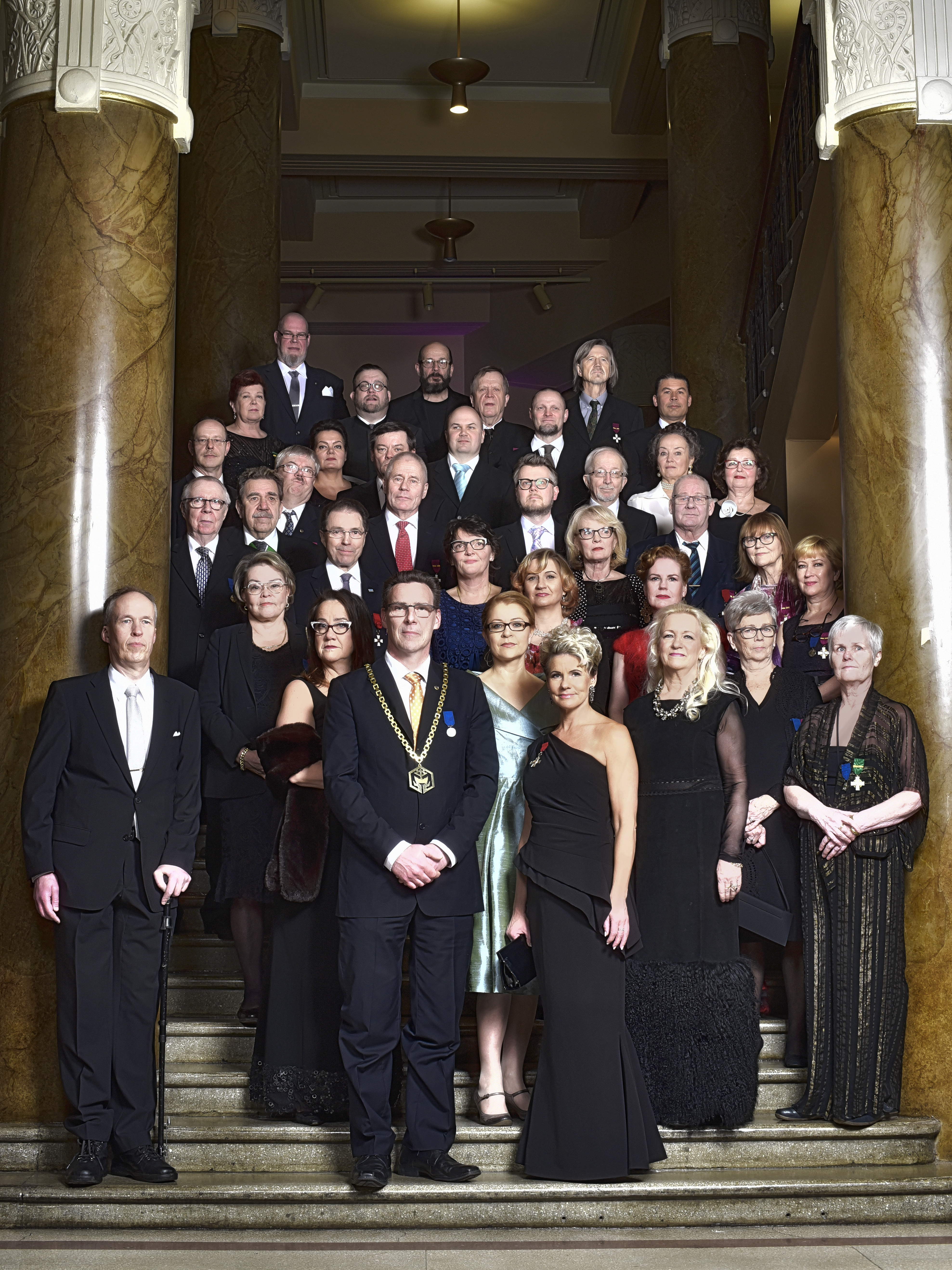 Helsingin Käsityö- ja Teollisuusyhdistyksen 150-vuotisjuhlaillallisen yhteydessä ikuistettiin myös yhdistyksen valtuuston ja johtokunnan ryhmäkuva.